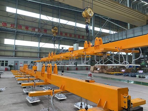 4、吸盤架可沿長度、寬度方向調整,每只吸盤頭可裝有截止閥,可根據需要關閉部分吸盤頭,吸吊不同尺寸的板材;